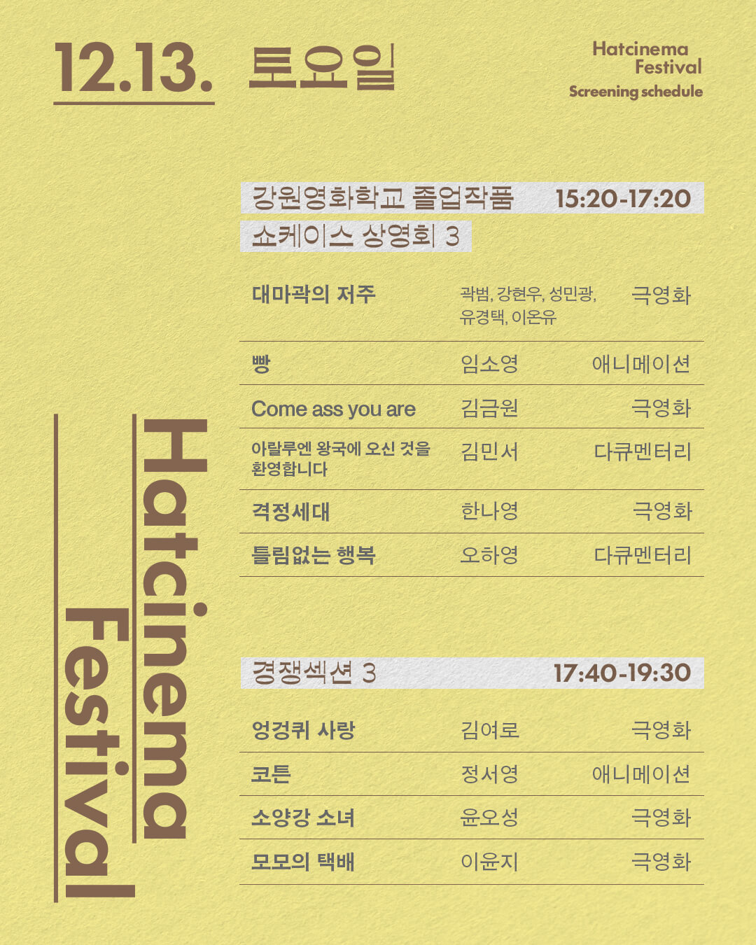 | [제9회 강원영회제] 2025 햇시네마 페스티벌 심사위원 및 시상 안내 (0) | 2025.12.12 |